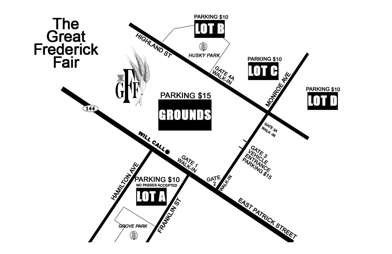 Take Route 15 South to Frederick, use Baltimore I-70 East to exit #56. Make a right at the end of the exit and follow straight, fairgrounds will be on your right just past Monroe Avenue.